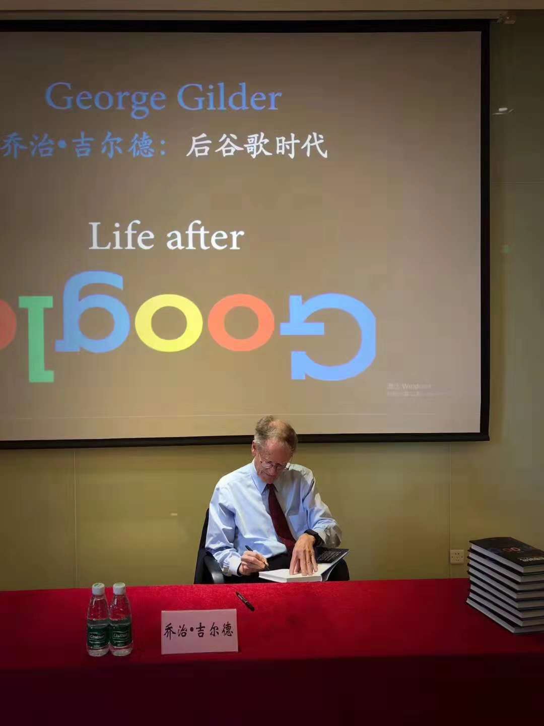 讲座后,乔治·吉尔德为新书签名,并现场为深圳技术大学(筹)写下寄语,送上祝福!