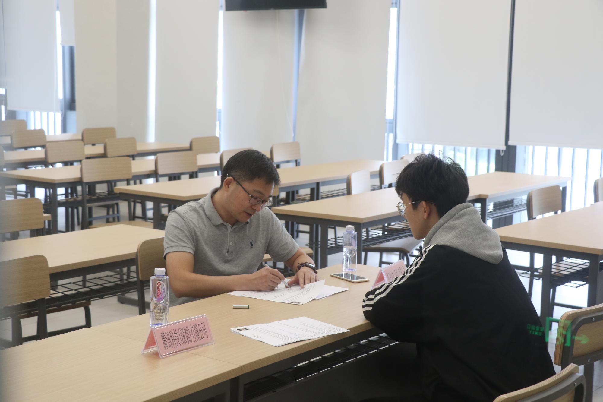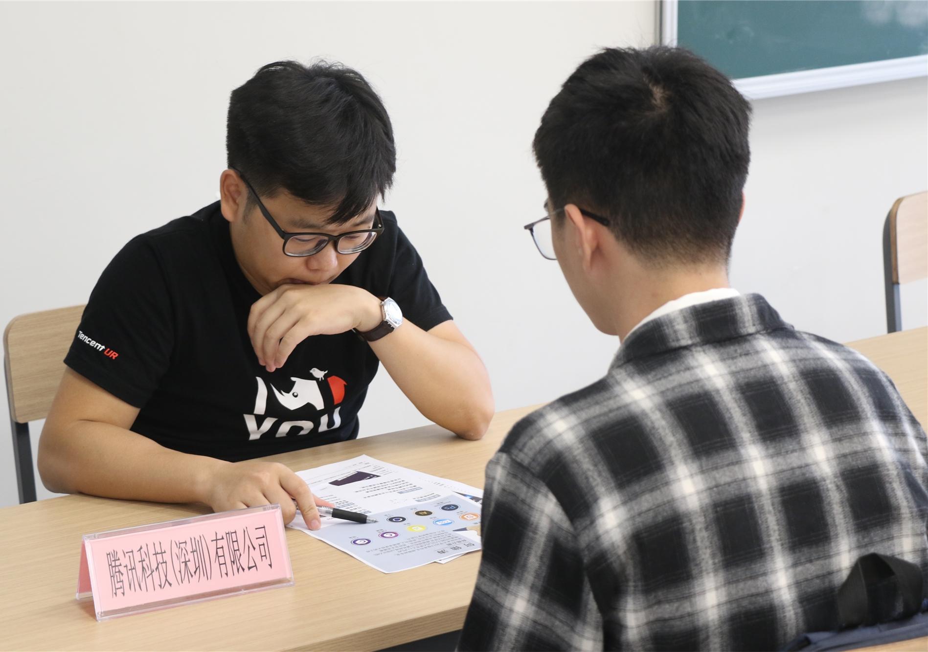 在双选会现场,专业扎实、学习能力强的学生备受青睐。腾讯科技(深圳)有限公司的面试教室前排起了长龙,几十个学生拿着简历等待面试。腾讯科技(深圳)有限公司研发管理部高校合作研究总监陈伟在面试中着重于了解学生的基础课功底、实践能力和未来职业规划。“我们团队工作对实习生要求很高,工作内容会远超他们平时的基本学习内容,难度大、很有挑战性,需要学生在常规学习外对未来职业发展有规划和准备。面试中我发现许多深技大学生都有这个意识,自主学习能力强,这点我很认可。"