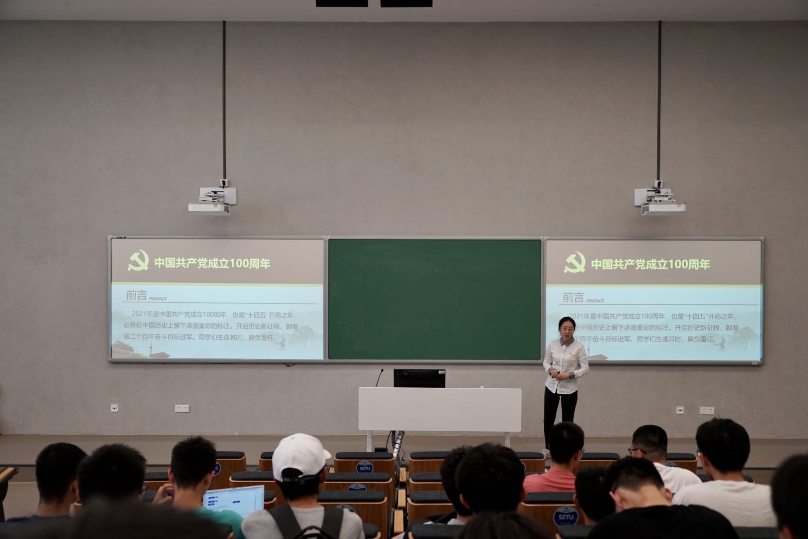 计算机与数学教工党支部书记史诗洁老师和同学们一起回顾了中国共产党走过的百年光辉历程,从“青春不迷茫”,“立鸿鹄志,做奋斗者”,“如何加入中国共产党”,“在奋斗中释放青春激情、追逐青春理想”四个方面,由浅入深,激励同学们敢闯敢试、努力奋斗,积极参加各类学术竞赛。