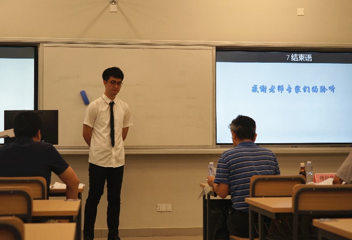 答辩现场严格按照我校硕士学位论文答辩程序和要求进行,共分为四个环节:答辩主席宣读委员会成员及答辩流程、学位申请人论文陈述、答辩专家提问与学位申请人回答、答辩委员会表决投票与结果宣读。