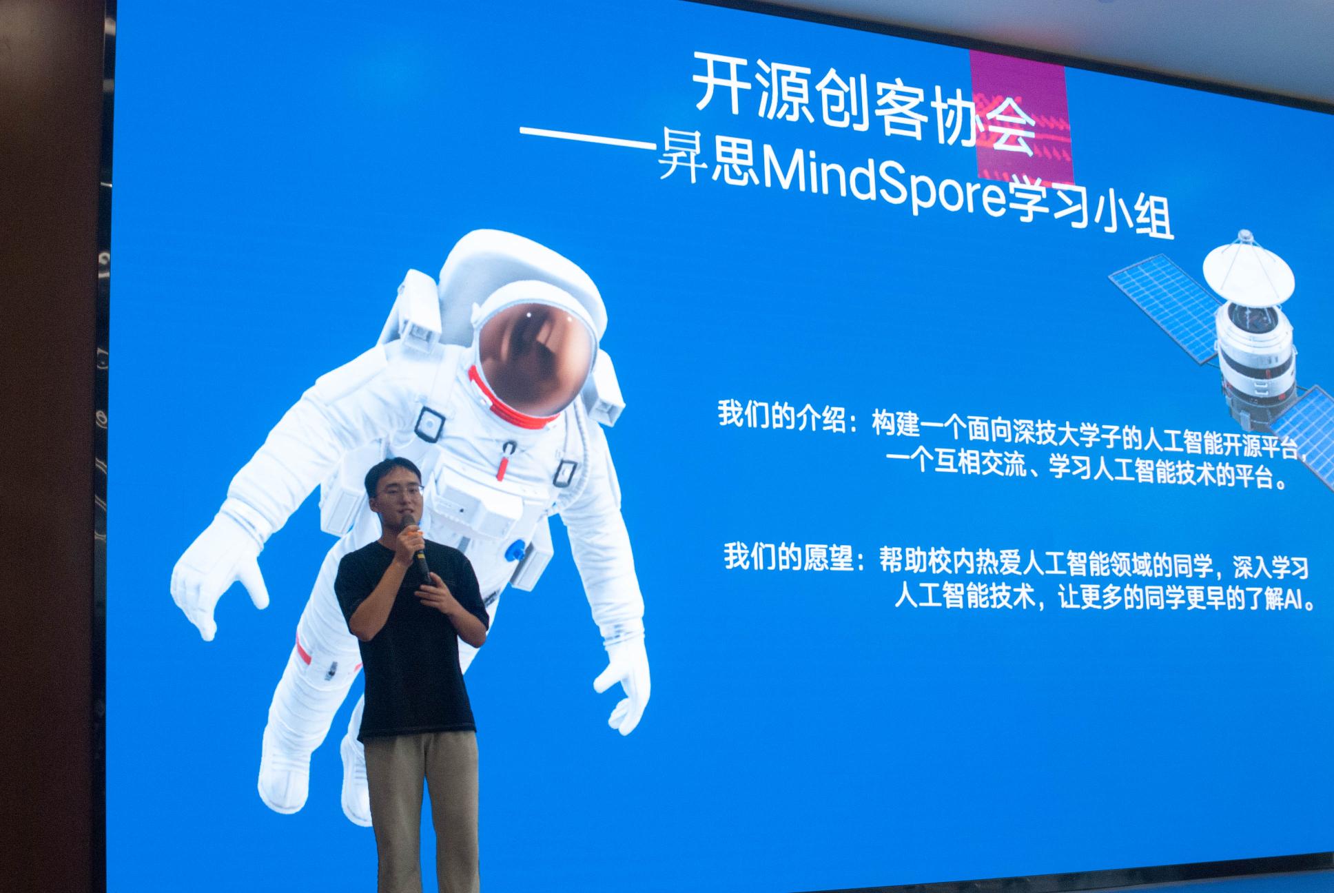 开源创客协会昇思MindSpore学习小组负责人叶嘉懿为现场同学介绍了学习小组的内容,包括小组的愿景及今后发展方向,并邀请现场嘉宾一起参与构建属于深圳技术大学的人工智能交流社区。
