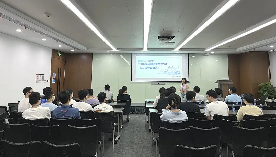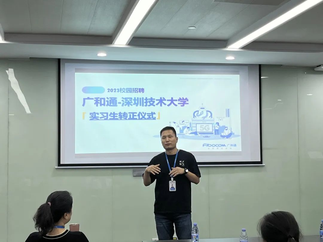 作者: 大数据与互联网学院 日期: 2022/09/289月22日,广和通携手深圳技术大学大数据与互联网学院开展了“2023届实习生转正仪式”。广和通人力资源副总裁孙小倩女士、研发中心高级总监张建国先生,深圳技术大学大数据与互联网学院宁磊、王培正老师等共同出席见证。