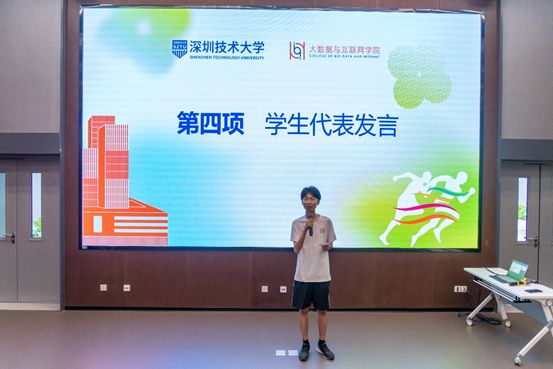 学生代表、跑团副团长、2022级学生黄奕熹在发言中表示,学院跑团为同学们提供了一个锻炼身体、增进友谊、展示风采的平台,跑步活动是一项富有创意和挑战的活动,它不仅能让我们享受运动的乐趣,还能培养我们的自信心和毅力;呼吁同学们积极参与跑团活动,把它作为一种生活方式和习惯,以跑步活动来缓解课程密集的压力,调整学习的状态;期待同学们一起走出教室,接触大自然,感受阳光和风景,拓展视野和心胸。
