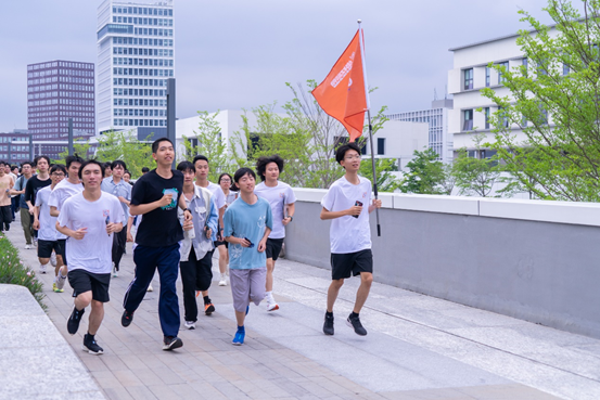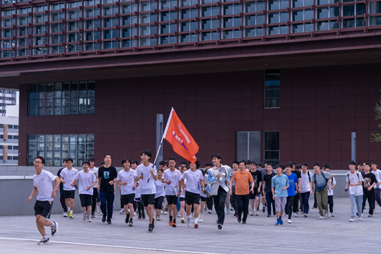 启动仪式结束后,叶建华书记、辅导员和参会同学,在跑团领跑员带领下做跑前热身,并在学院楼集体奔向体育场,开启了“青春向未来”跑团首跑。