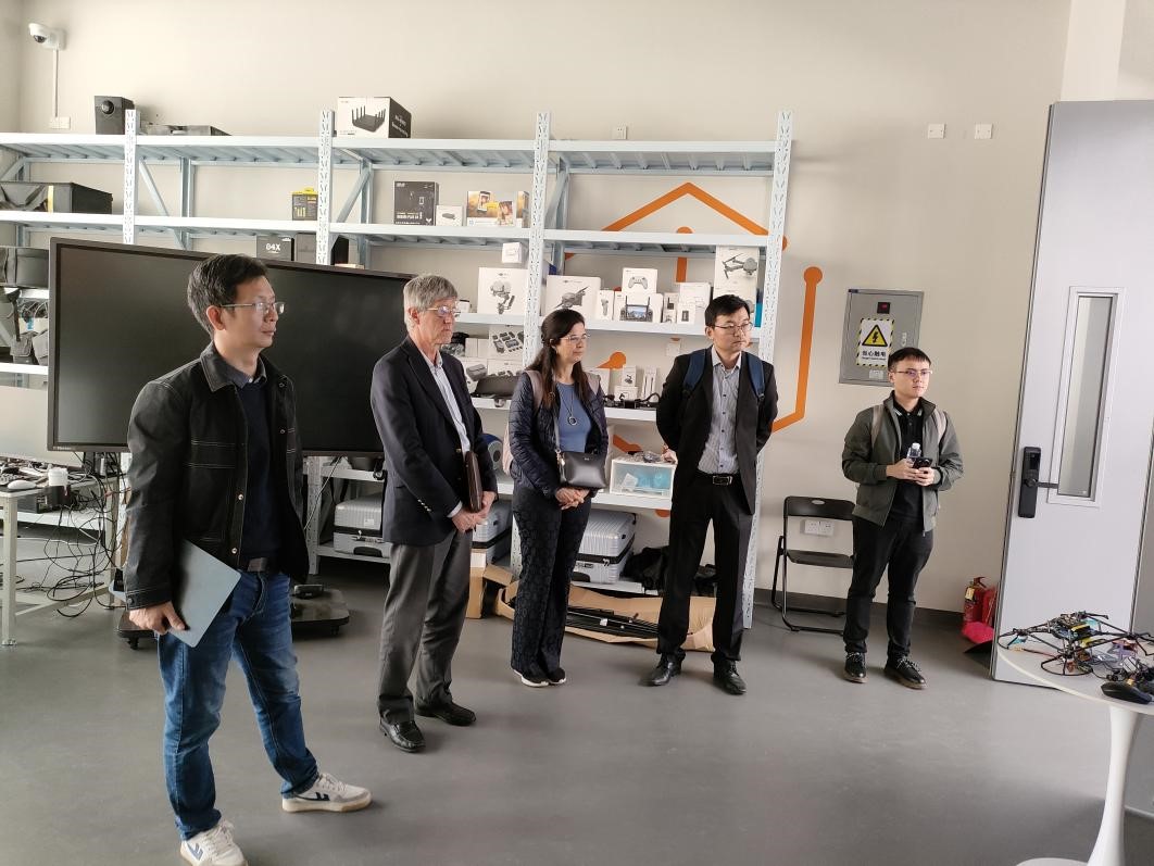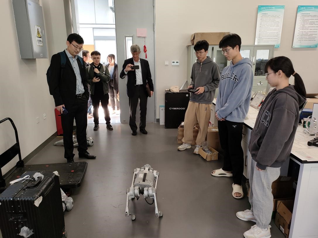 会议结束后,Oliveira和Freita教授参观了学院的机器人实验室和科技创新中心。在此过程中,同学们介绍了他们在科技创新项目上的成果,展示了深圳技术大学在科研教学与实践应用方面的独特优势。Oliveira和Freita教授对此表示了高度赞赏,并期望未来两校能够在学科发展、师生交流等方面展开更加广泛和深入的合作。