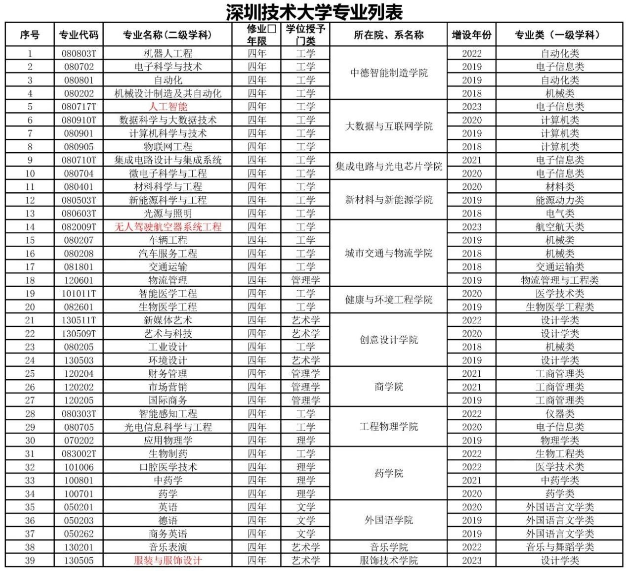 深圳技术大学紧密对接粤港澳大湾区和深圳“20+8”产业布局,致力于以高水平学科建设深入推进学校高质量发展,努力建成一流的研究型技术大学。目前,学校本科专业数量增至39个,涵盖工学、理学、管理学、文学和艺术学5个学位授予门类。未来,学校将进一步推进学科专业体系建设,优化学科专业布局,加强专业内涵建设,培养具有国际视野、工匠精神和创新创业能力的高素质研究技术型人才,持续发挥对粤港澳大湾区经济发展的示范引领和辐射带动作用。