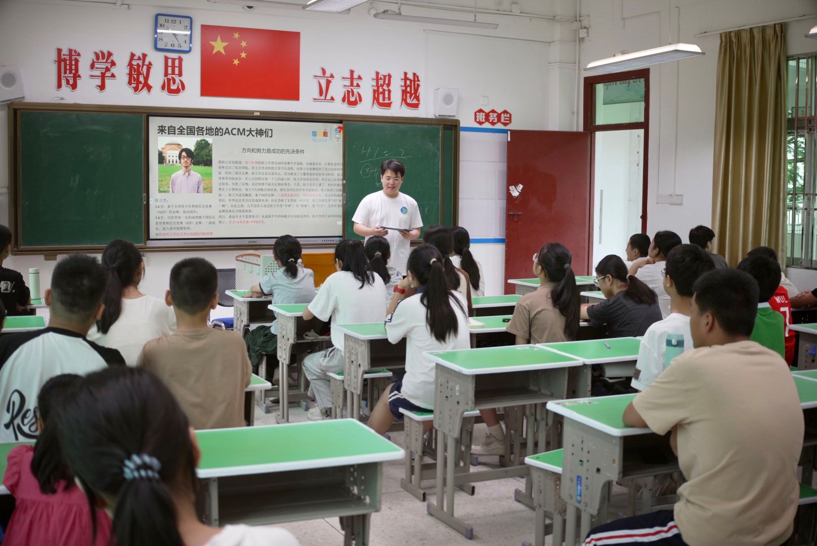 作者: 大数据与互联网学院 日期: 2024/07/18为充分发挥深圳技术大学大数据与互联网学院科技创新中心优势,推动学院作为纵向帮扶的重要力量深度参与“百千万工程”,在县域人才培养和改革创新等领域加强共建,由深圳技术大学大数据与互联网学院、团陆河县委、“双百行动”驻陆河县服务队联合主办的“人工智能赋能青少年—苗圃工程”三下乡活动,近日于陆河县开展。其中,2024年7月16日至17日的信息学奥林匹克启蒙课程受到了同学们的热情关注和踊跃参与。