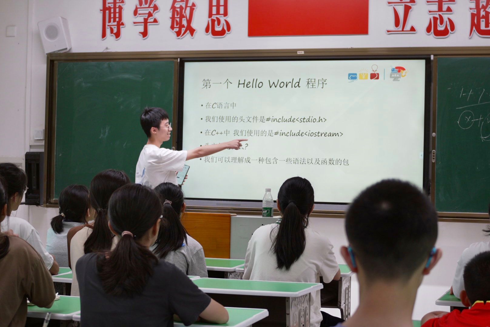 深技大苗圃工程突击队团队成员们结合陆河学生的实际情况,精心设计了丰富多样的启蒙内容,包括编程入门、编译环境、编程语言、C/C++基础语法等,通过现场编程演示、互动问答等形式,使学生们在轻松愉快的氛围中学习和交流。此外,团队成员们还为陆河学生们提供了入门的编程实例,帮助他们更好地理解所学知识。在授课过程中,团队成员积极引导学生们思考问题的本质和解决方法,鼓励他们关注自身逻辑思维能力和创新精神培养,希望同学们未来能通过参与算法竞赛,拓宽自己的视野,在竞赛中结交志同道合的朋友,共同学习、共同进步。