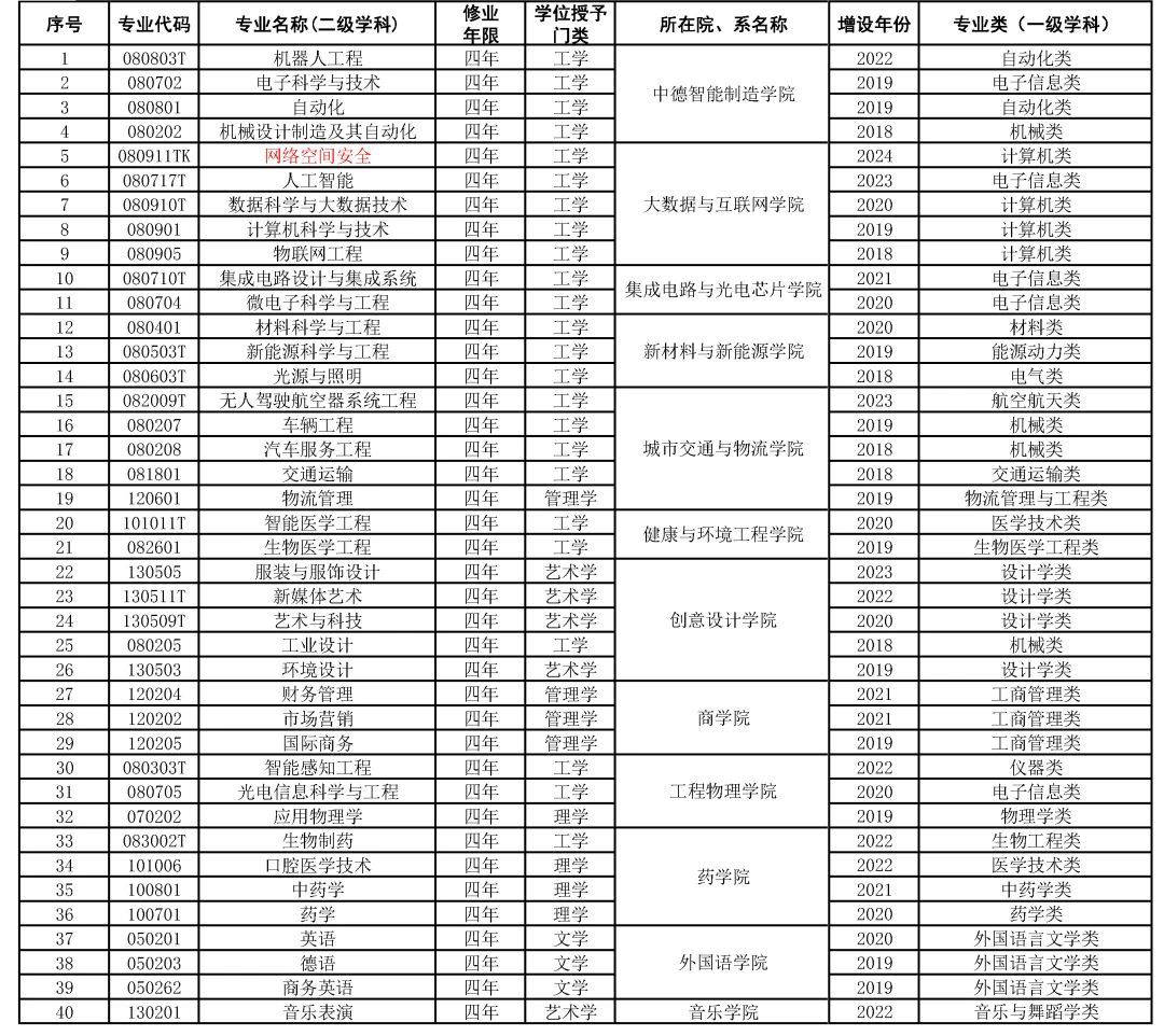 作者: 大数据与互联网学院 日期: 2025/04/23近日,教育部公布了2024年度普通高等学校本科专业备案和审批结果。深圳技术大学2024年度申请增设的网络空间安全专业获教育部批准。目前,学校本科专业数量增至40个,涵盖工学、理学、管理学、文学和艺术学5个学位授予门类。