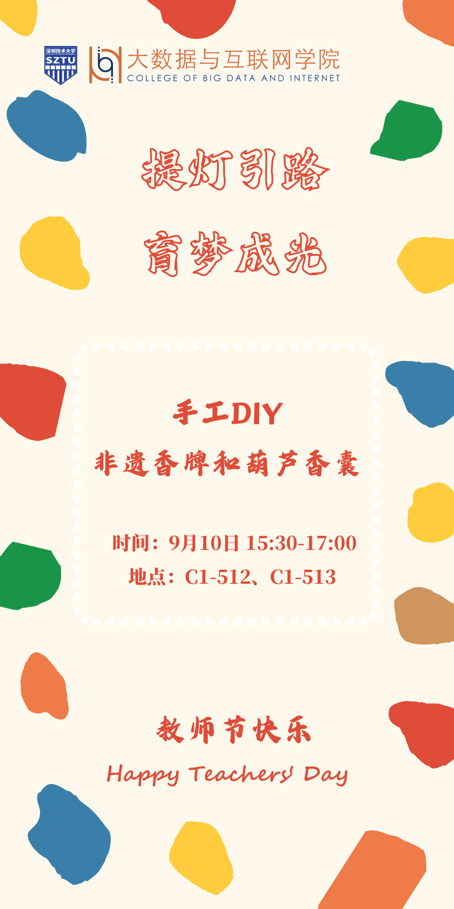 学院开展了非遗香牌与葫芦香囊的手工DIY活动。老师们在亲手制作中体验非遗文化的独特魅力,在淡雅的香气与精巧的工艺中感受节日氛围,也为教师节增添了一份温馨与雅致。