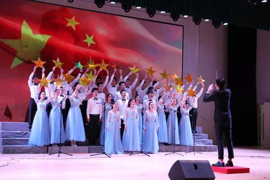 我院合唱团在老师的精心指导下,历经为期一个月的训练,在合唱比赛的舞台上,为全校师生送上了《光荣啊,中国共青团》和《我和我的祖国》两首曲目。