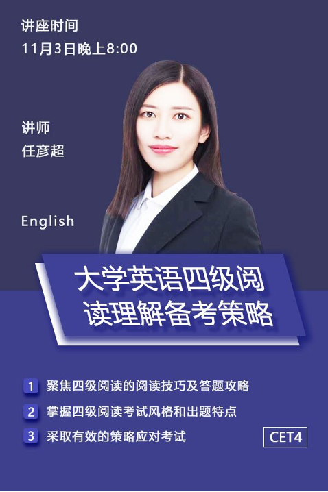 环球英语将举办大学英语四级阅读理解备考策略线上讲座,欢迎各位同学积极参加!