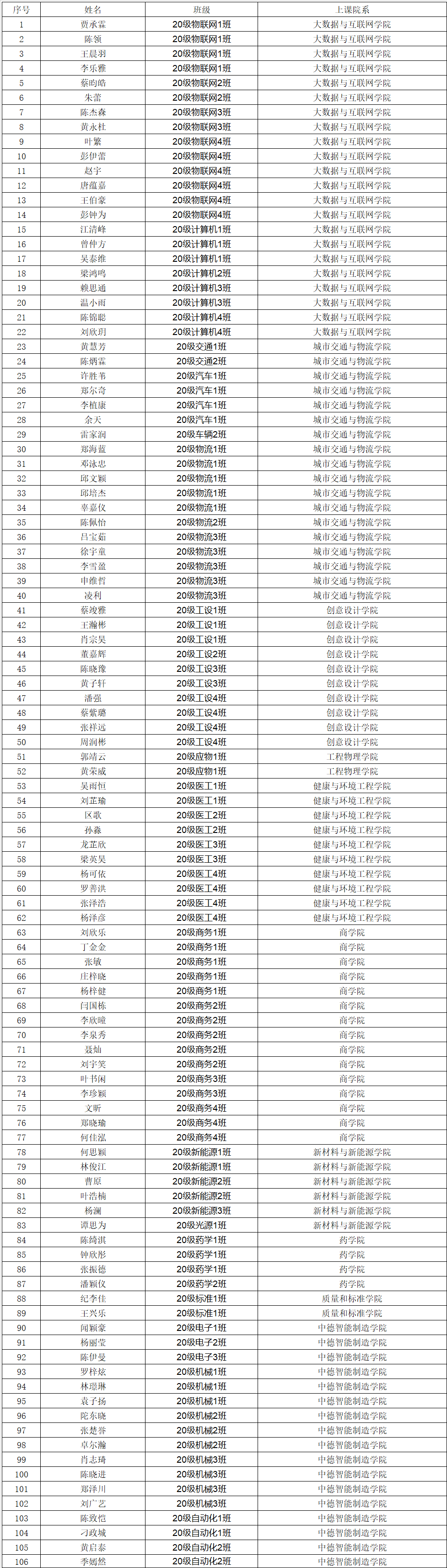 作者: 外国语学院 日期: 2020/09/25经深圳技术大学大学英语入学分级测试测评,以下106名同学达到合格标准,可申请免修大学英语A1课程,现予以公示。