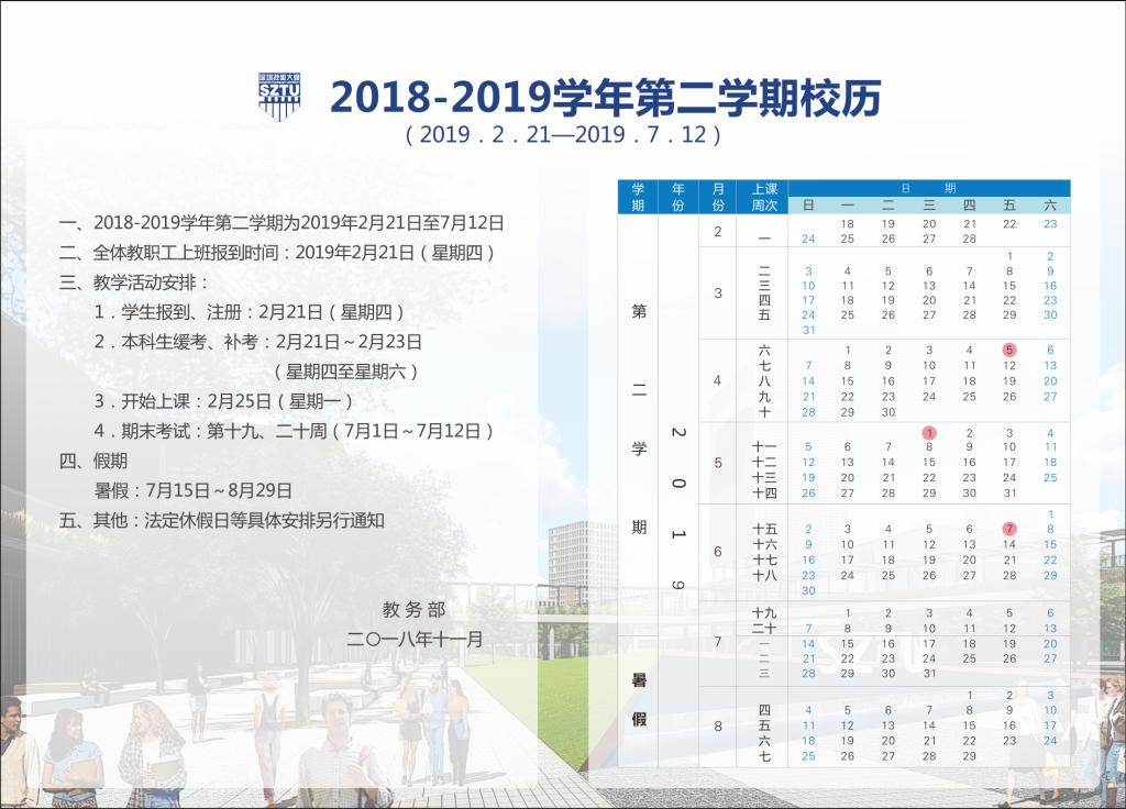 关于公布2018-2019学年第二学期校历的通知