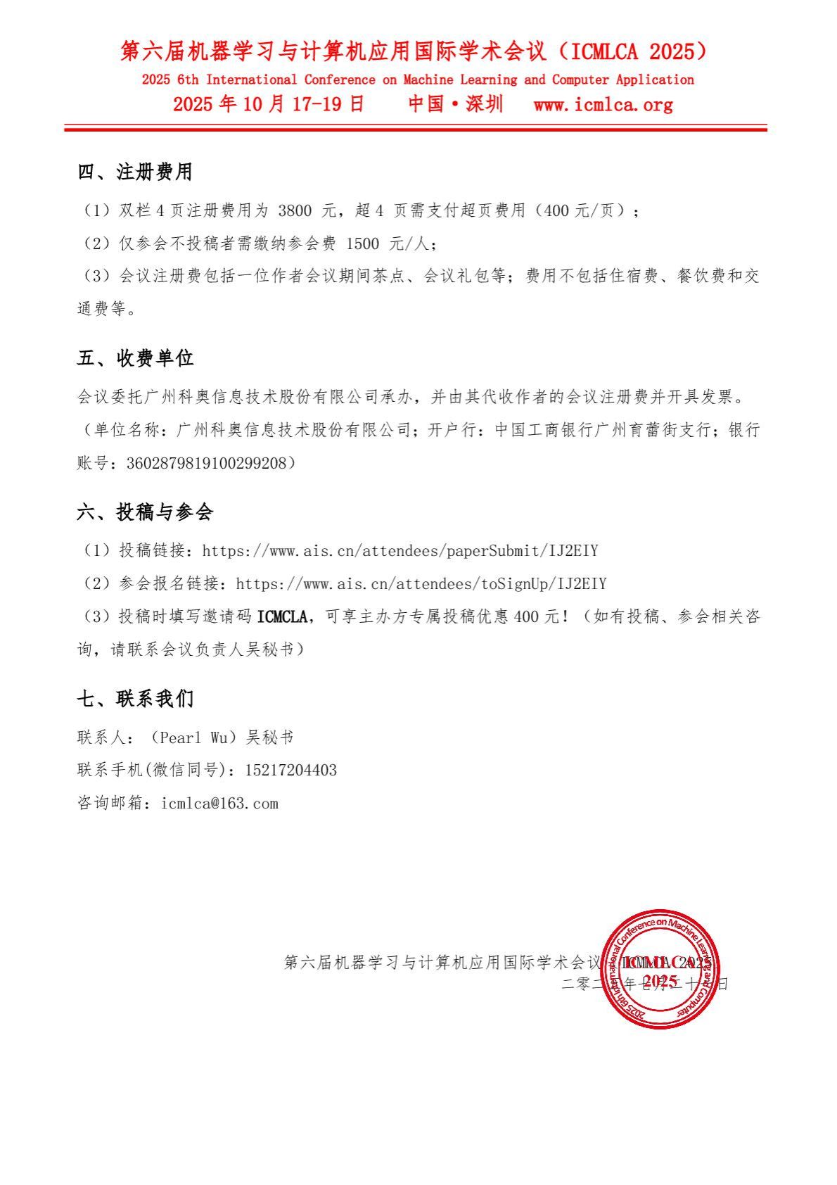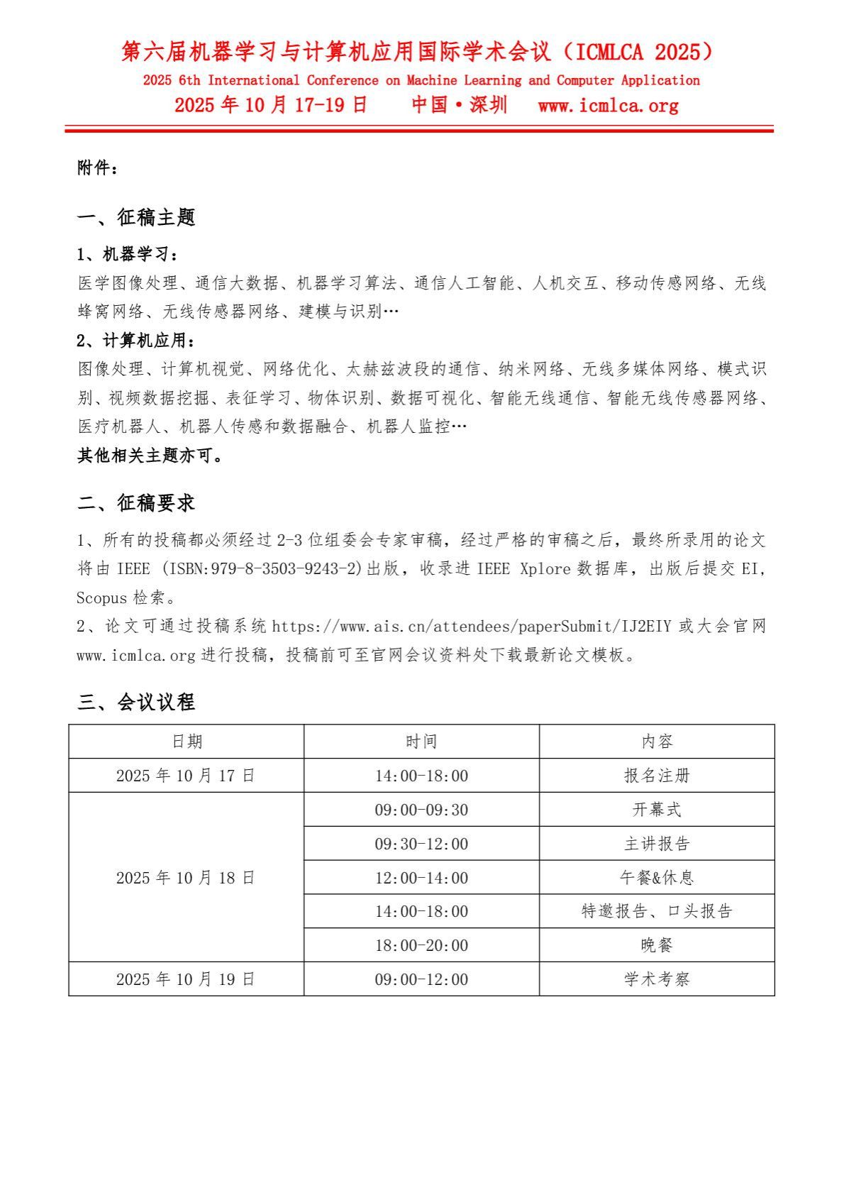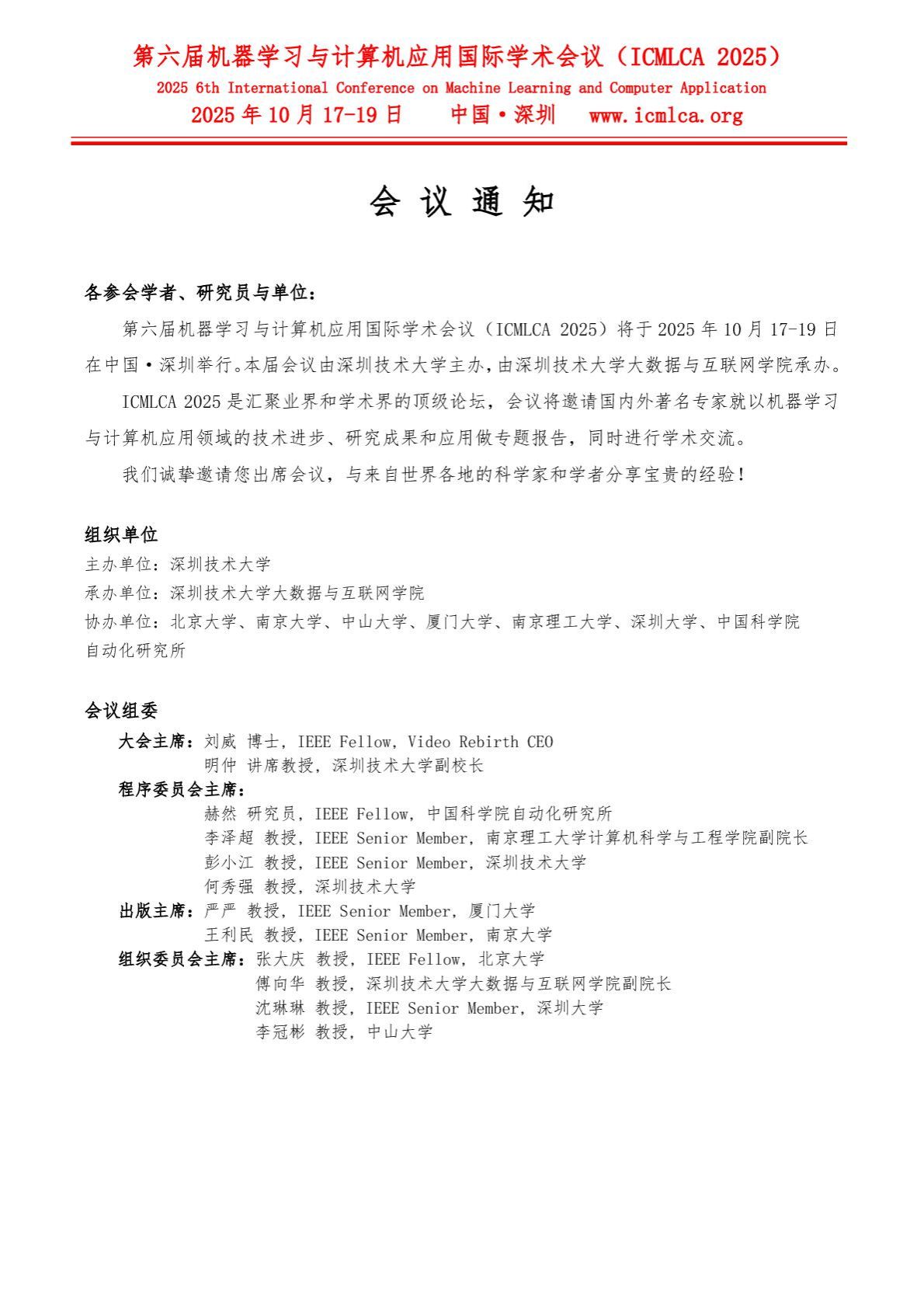 第六届机器学习与计算机应用国际学术会议召开通知