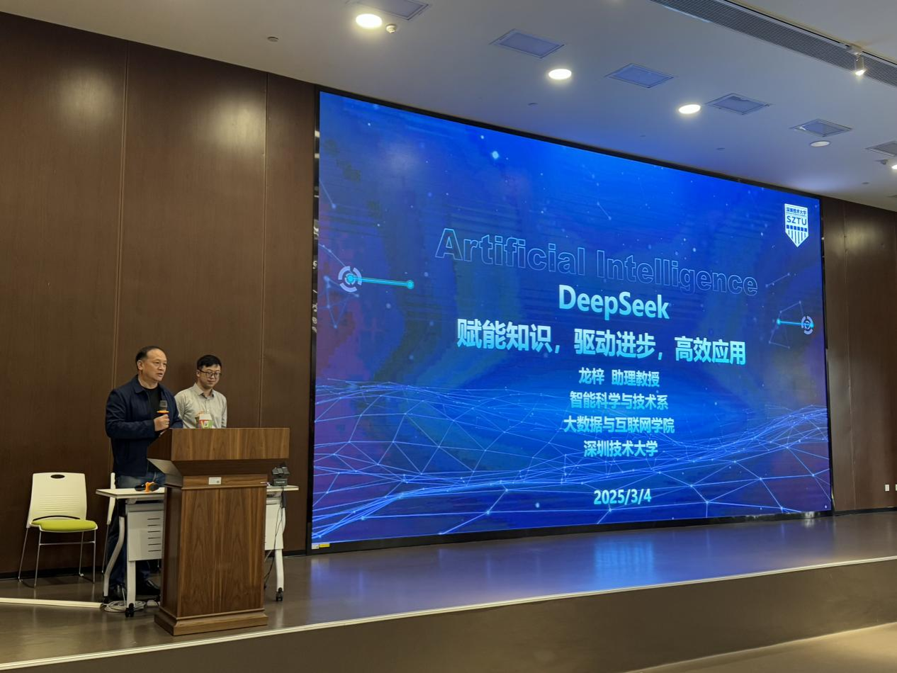 2025年3月4日下午,深圳技术大学大数据与互联网学院学术报告厅座无虚席,龙梓助理教授以“DeepSeek:赋能知识,驱动进步,高效应用”为主题,为我校师生呈现了一场精彩纷呈的学术讲座。本次活动由大数据与互联网学院副院长梁立新教授主持。在近两个小时的讲座中,龙老师为在场师生详细解读了DeepSeek这一前沿大语言模型的核心要义。首先,他从技术原理入手,深入浅出地介绍了DeepSeek的基本概念,并通过对比分析其与其他大语言...