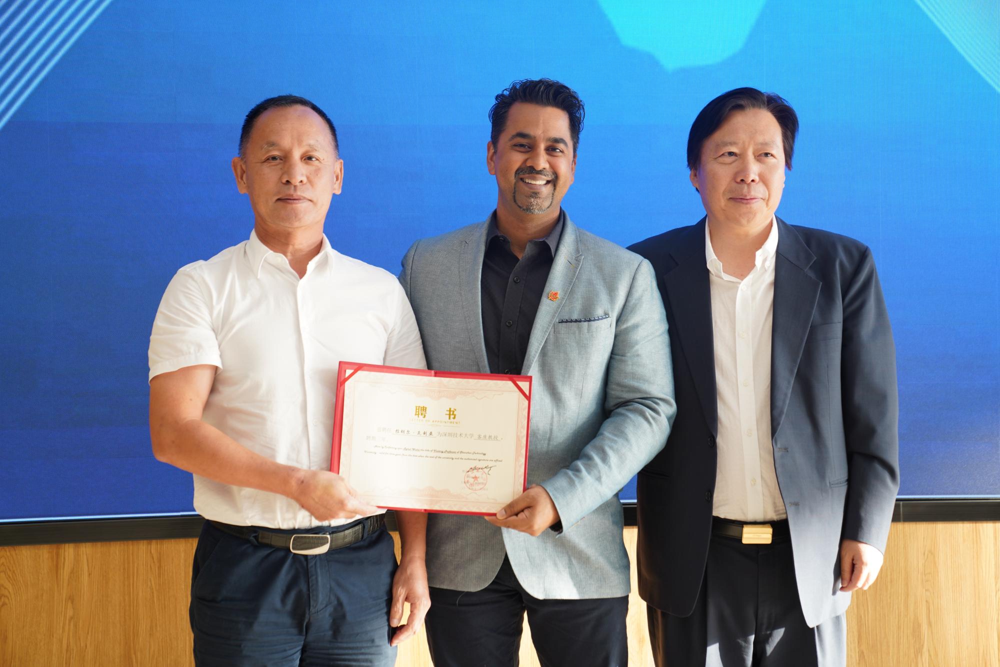 11月4日下午,温哥华著名创业机构启动学院(Launch Academy) CEO、G20青年企业家Ray Walia受聘成为深圳技术大学客座教授,并为深圳技术大学创业创客中心与启动学院联合孵化基地揭牌,双方未来将展开全方位合作,共同打造助力学生实践、就业、创业的综合性创新创业孵化平台。深圳技术大学副主任徐刚,大数据与互联网学院院长相韶华、健康与环境工程学院院长胡俊青、创业创客与就业指导中心主任黄子嵩等参加仪式。(深圳技术大...