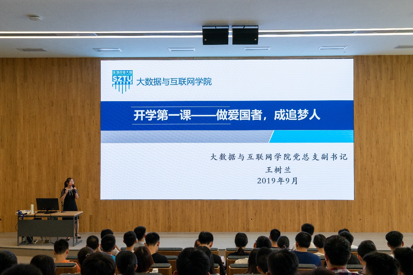 为使2019级新生能够更好地认识并融入大学生活,2019年9月17日,大数据与互联网学院开展了以“做爱国者,成追梦人”为主题的开学第一课。学院党总支王树兰副书记担任此次课程的主讲人,2019级物联网工程专业的本科生以及计算机科学与技术的研究生聆听了本次开学第一课。 本次课程中王副书记首先对新生们表示热烈的欢迎,并介绍了学校的基本概况,包括学院的介绍、专业的未来发展方向、学校的师资队伍以及校园生活等。其中,王...