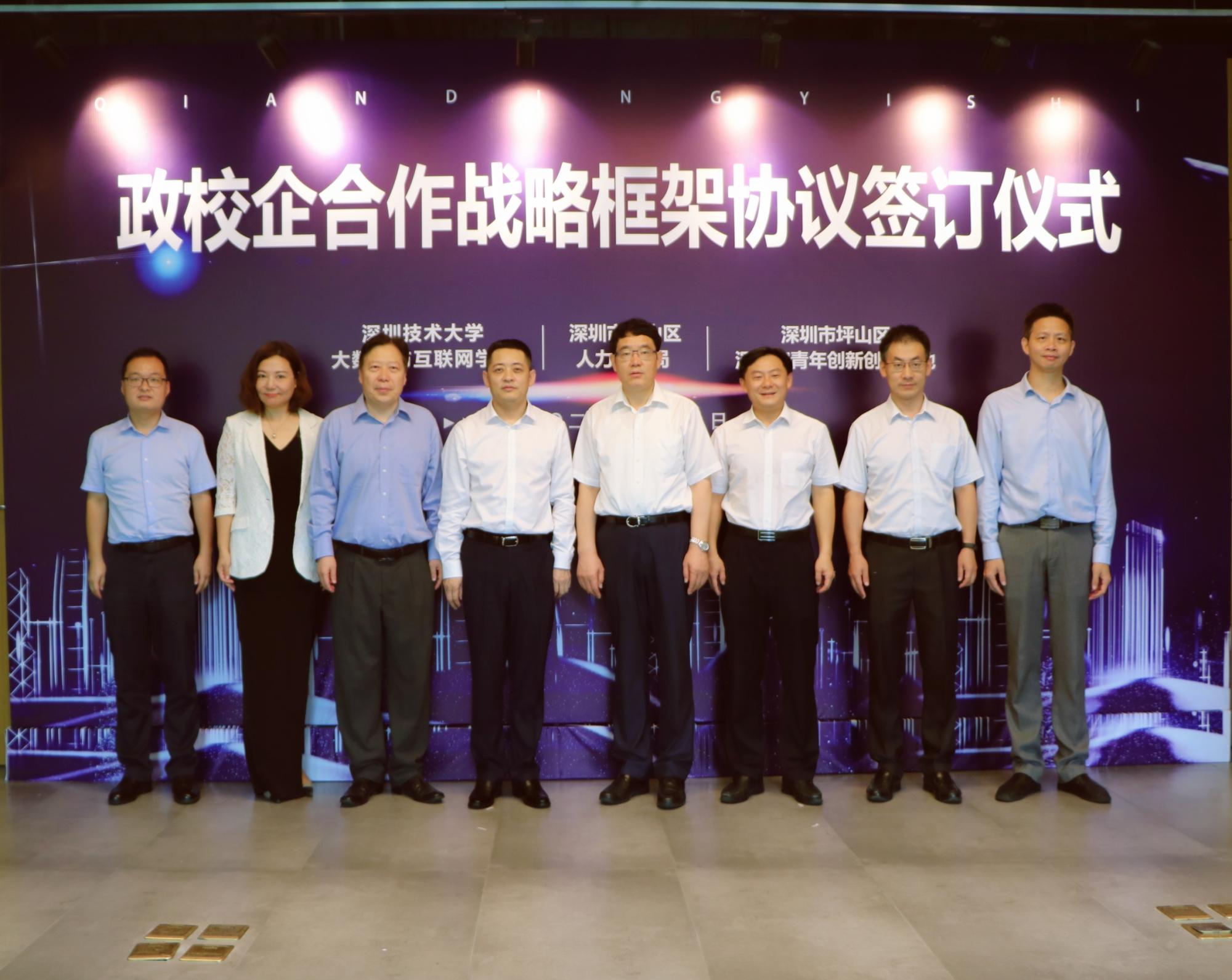 7月8日上午,深圳技术大学大数据与互联网学院、坪山区人力资源局、坪山区深港澳青年创新创业基地三方共同签署战略合作框架协议,正式启动政校企合作。深圳技术大学校长阮双琛,坪山区委常委、统战部部长李广明等共同出席项目签约仪式。 阮双琛校长表示,这是深圳技术大学签署的第一个政、校、企三方合作项目,也是深圳技术大学第二次和坪山区政府合作。学校致力于培养高水平、应用型高端工程技术人才,立足大湾区,扎根坪山,...